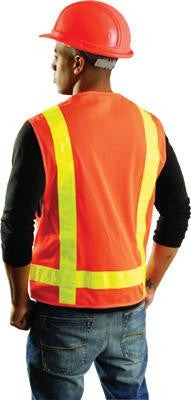 OccuNomix Large Orange OccuLux L'Orange Lightweight Polyester And Mesh Class 2 Classic Orange Gloss Vest With Snap Front Closure, 2" 3M Scotchlite Reflective Tape Striping And 4 Pockets