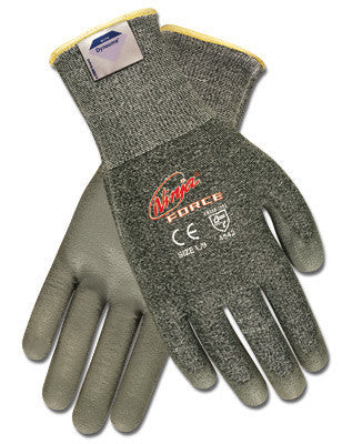 Description: Ninja Force, 13 Gauge Gray Dyneema/Synthetic/Fiberglass Shell, Gray Polyuerethane Coated Palm and Fingertips.