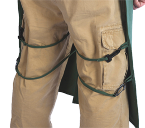 Comfortable interlocking construction keeps legs protected behind leg flaps.