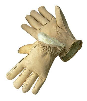 Description: Radnor Thinsulate lined grain cowhide drivers gloves keep your hands warm and dry. Color coded hem for easy identification these gloves have a keystone thumb and elastic back for a better
