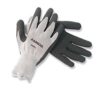 Description: Radnor ecomomy grade split leather palm work gloves have a reinforced knuckle strap, pull tab, full index finger and fingertips. This style features a striped canvas back with matching sta